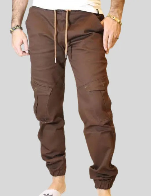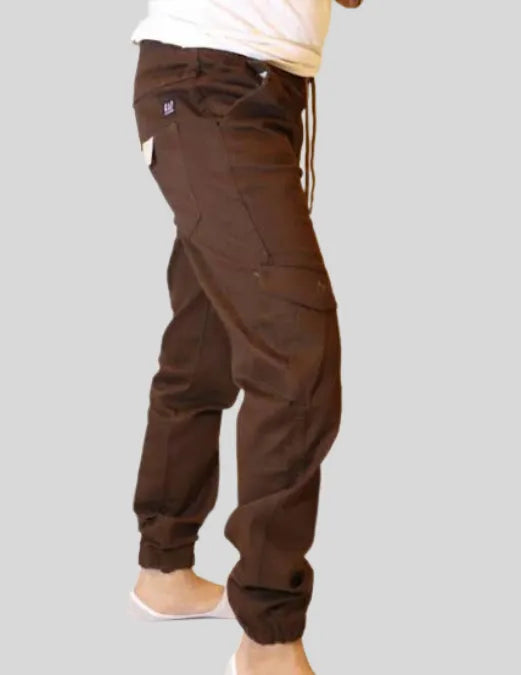 Unisex Brown Slim Fit Cargo Pants with Elastic Cuffs – The Glitzo