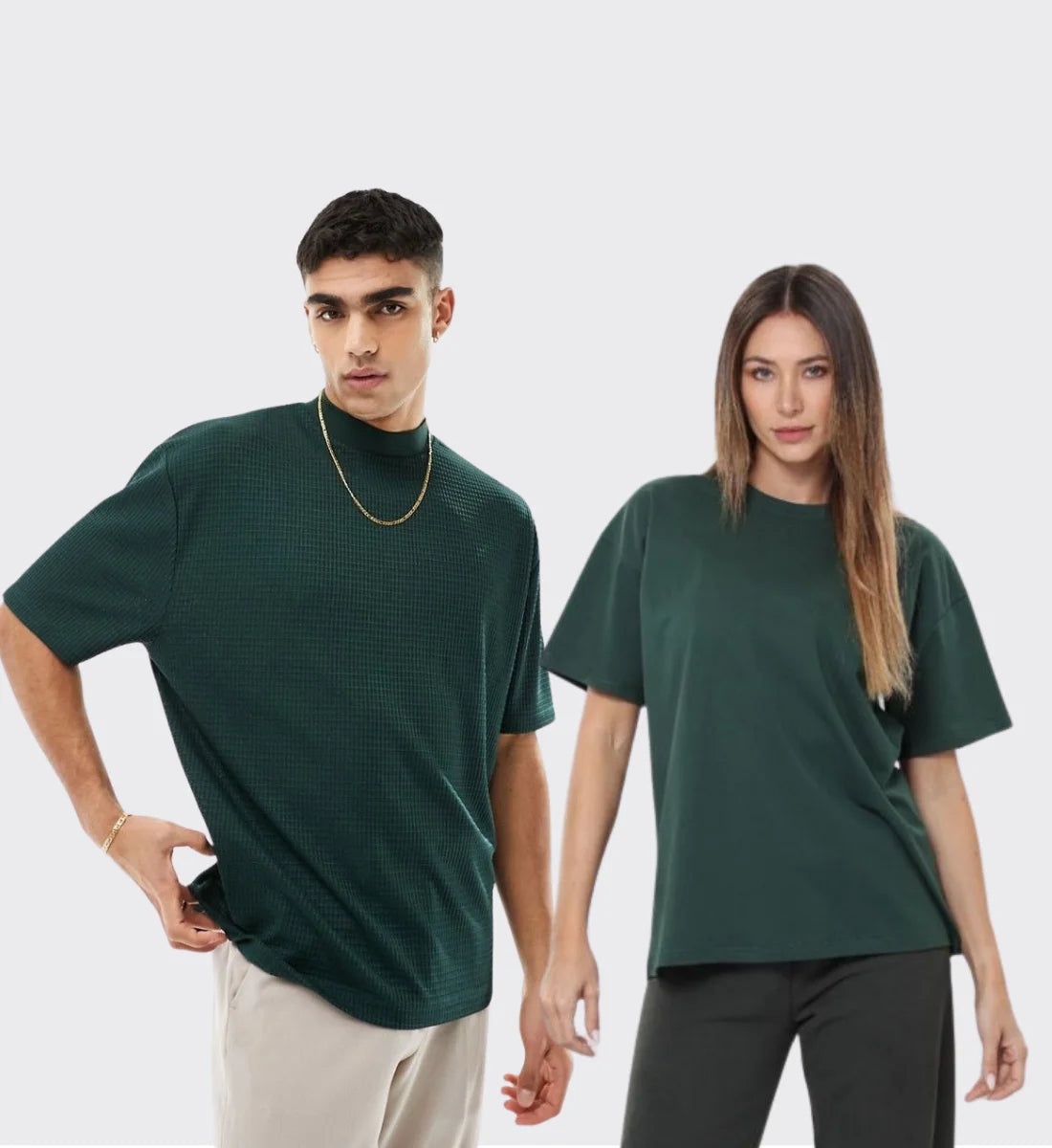khai green couple tshirt khai green tshirt Man wearing a dark green t-shirt and white pants on a white background Man wearing a green t-shirt and jeans on a white background Unisex Oversized khai green T-Shirt – Drop Shoulder Heavyweight Cotton Streetwear Tee Person wearing a green t-shirt and dark pants on a plain background Woman wearing a green t-shirt and black pants on a gray background Man wearing a green turtleneck shirt and beige pants on a white background Size chart for shirts with measurements in inches, featuring the Glitzo brand logo.